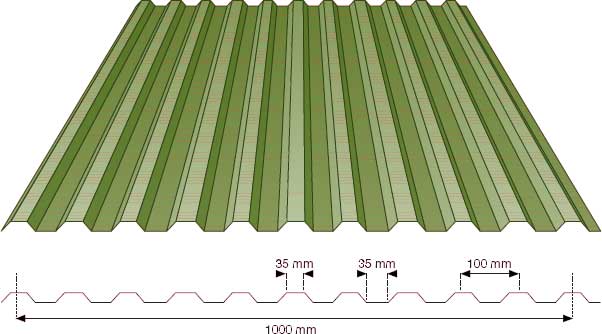 Svart takplåt med täckande bredd 1000 mm.Kallas också för Korrugerad plåt.