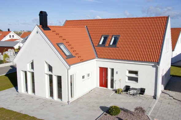 Benders ytbehandlade takpanna är i grunden en helt genomfärgad takpanna med Benderit ytbehandling för att ytterligare framhäva färgen på taket.