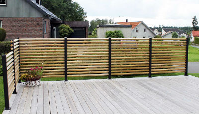 Stolpar som kan användas som staket, räcke eller avskärmning. Kombineras med snedställda träreglar och monteras snabbt och enkelt.